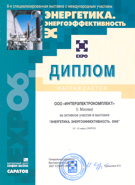Представили свою продукцию, детально познакомились с рынком Поволжского региона и провели обучение партнеров специалисты Группы компаний IEK в течение минувшей недели. В рамках традиционной выставки «Энергетика. Энергоэффективность – 2006» состоялись встречи с представителями проектных, эксплуатационных и торгующих организаций. Организаторы выставки отметили Группу компаний IEK в числе самых активных участников выставки и наградили специальным дипломом. Продукцией компании, представленной на выставке, уже заинтересовались некоторые крупные организации Поволжья.
