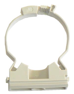 - скоба металлическая двухкомпонентная. Служит для крепления труб и металлорукава диаметром от 10 до 50 мм. Цвет белый, материал: оцинкованная сталь;