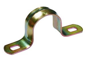 - скоба металлическая двухлапковая. Служит для крепления труб и металлорукава диаметром от 10 до 50 мм. Цвет белый, материал: оцинкованная сталь;