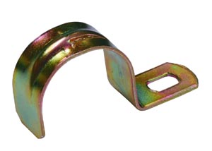 - скоба металлическая однолапковая. Служит для крепления труб и металлорукава диаметром от 10 до 50 мм. Цвет белый. Материал: оцинкованная сталь.