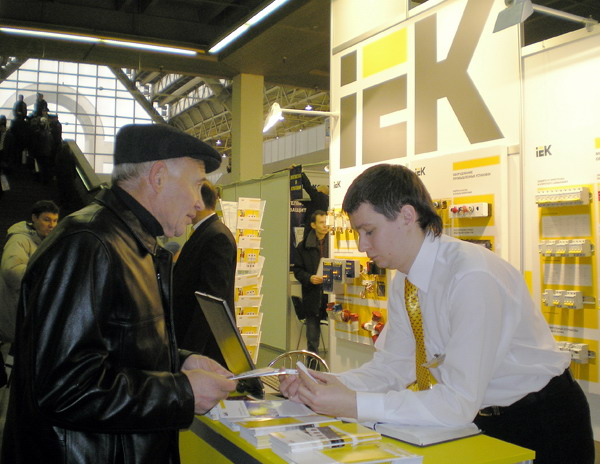 Стенд компании удобно расположен у начала выставочной экспозиции. Посетители и участники выставки могут познакомиться с силовым электротехническим оборудованием, модульной, сигнальной и другой аппаратурой, выпускаемой под торговой маркой IEK. Как показал первый день работы выставки, наибольший интерес вызвали трансформаторы тока ТТИ, автоматические выключатели ВА88, предохранители плавкие ППНИ и другие электротехнические аппараты. Выставка продлится до 1 декабря.