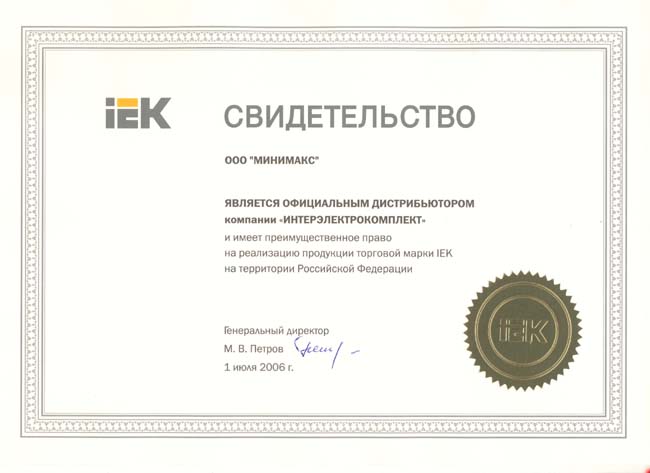 Группа компаний IEK поздравляет своего партнера – компанию «Минимакс» с присвоением статуса дистрибьютора по продукции IEK®. Новый статус - ключевое событие за всю пятилетнюю историю взаимоотношений между компаниями.
