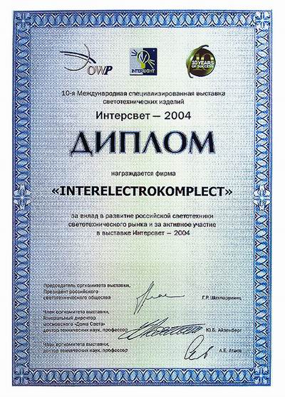 IEK награжден Дипломом выставки «ИНТЕРСВЕТ-2004»
