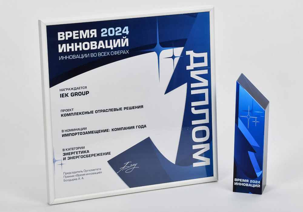 IEK GROUP удостоена награды за новые решения и передовые технологии. По итогам XIV ежегодной премии «Время инноваций–2024» она признана победителем в номинации «Импортозамещение: компания года» в категории «Энергетика и энергосбережение».