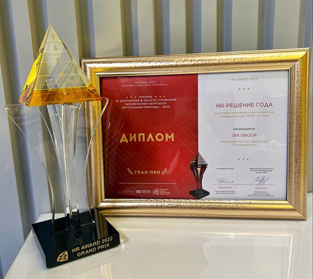 IEK GROUP получила Гран-при премии «Хрустальная пирамида 2022» в номинации «HR-решение года» среди компаний с численностью до 5000 сотрудников. Победу нам принес образовательный проект «Технолидеры».
