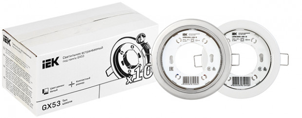 IEK GROUP предлагает самые популярные модели светильников для ламп с цоколем GX53 в ассортименте IEK® в удобной и выгодной упаковке по 10 штук.
