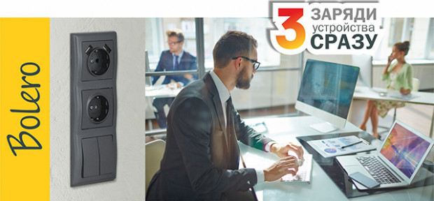 Розетки с USB-разъемами серии BOLERO IEK® – заряди 3 устройства сразу!
