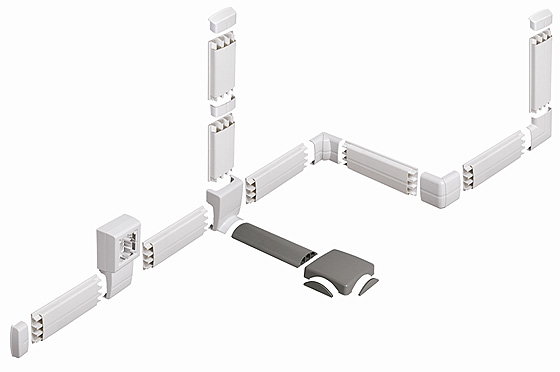 Для удобства монтажа на плинтусные и напольные кабель-каналы нанесена перфорация, а ребристость основания позволяет крепить их на клеевые растворы и двухсторонние скотчи. Наличие изменяемых углов плинтусного кабель-канала существенно облегчает и улучшает монтаж системы. А принудительные разделители в аксессуарах обеспечивают качественную прокладку информационной проводки высоких категорий.