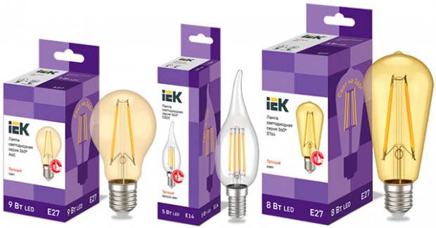 Расширение ассортимента филаментных ламп серии 360° IEK® – новые типоформы и модели с золочеными колбами