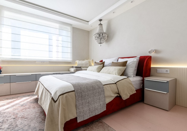 Спальня-будуар для любительницы шопинга — система освещения на продукции IEK в новом проекте «Квартирного вопроса»