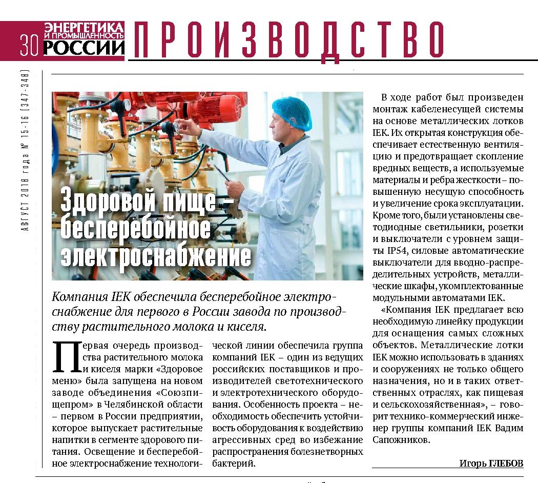 IEK GROUP обеспечила бесперебойное электроснабжение для первого в России (Челябинская область) завода по производству растительного молока и киселя. Необходимо было установить оборудование, устойчивое к воздействию агрессивных сред во избежание распространения бактерий. С данной особенностью отлично справились кабеленесущие системы на основе металлических лотков IEK. Их открытая конструкция обеспечила естественную вентиляцию и предотвратила скопление вредных веществ.