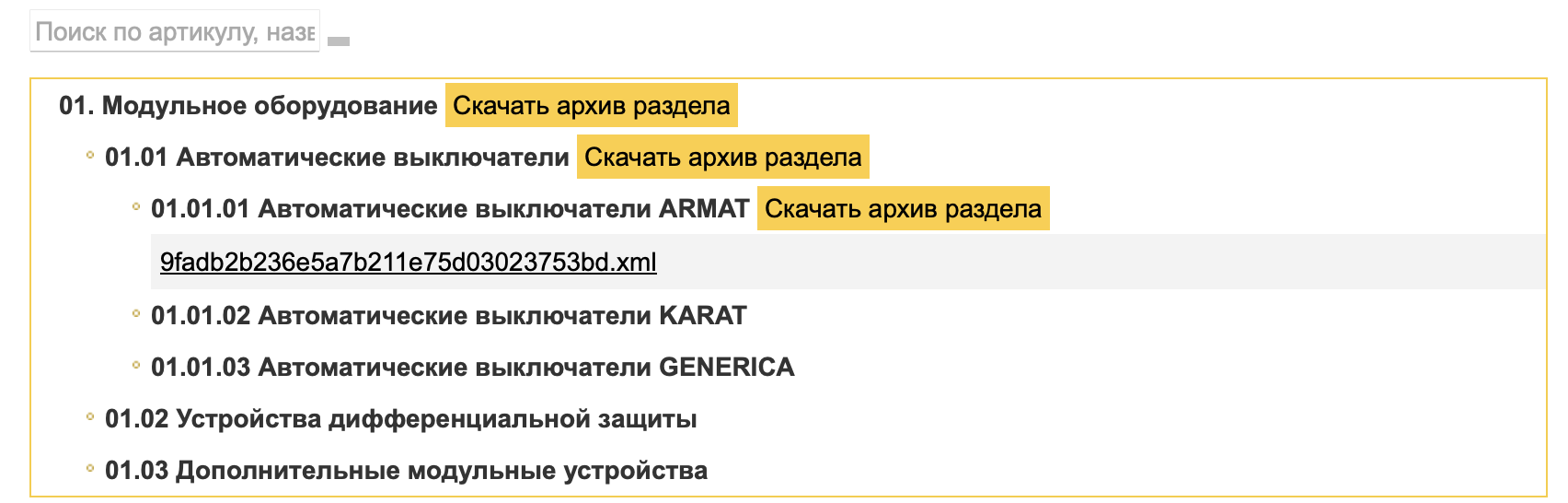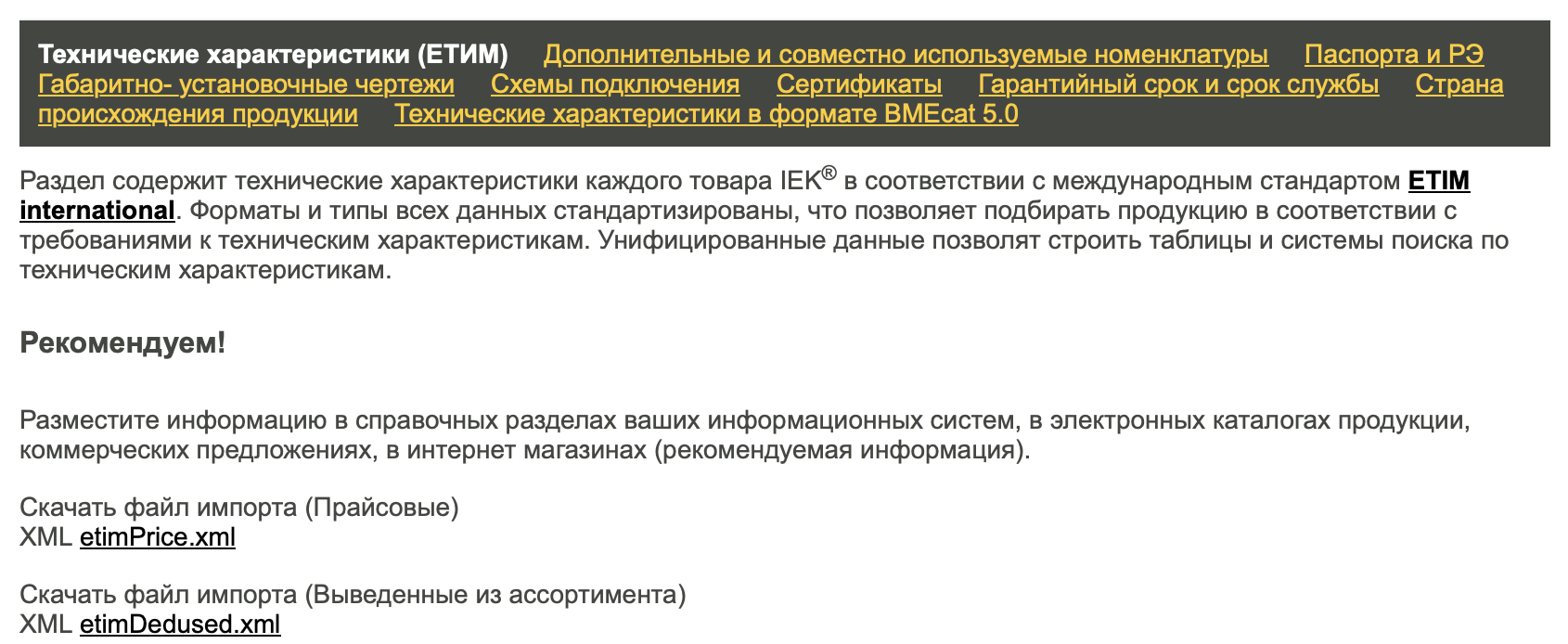 В разделе «Информационная база данных» у Вас есть возможность скачать всю необходимую информацию о продукте посредством XML-файлов.